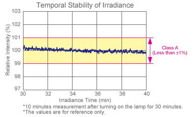 ![]() | 輻照時間穩(wěn)定性 **使用,閃爍較少和光輸出穩(wěn)定。 *如果你長時間使用HAL-320W,我們建議使用恒壓電源,這樣HAL-320W就不會受到負(fù)載變化的影響。 ![]() |