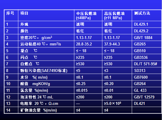 (4)運行中抗燃油標(biāo)準(zhǔn)